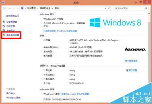 2、然后單擊左側(cè)高級系統(tǒng)設置,如圖所示:
