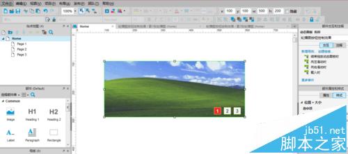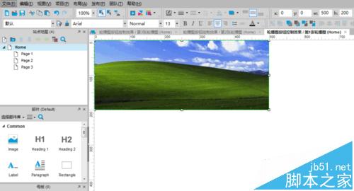 依次在“第2、3張輪播圖”標簽頁編輯中采用相同的操作,依次拖入“圖片”元件并完成相同參數設置,依次添加完第2張輪播圖,第3張輪播圖。教程中采用的輪播圖分別為:windows XP、Windows 7、Windows8的經典桌面圖片;如處圖所示: