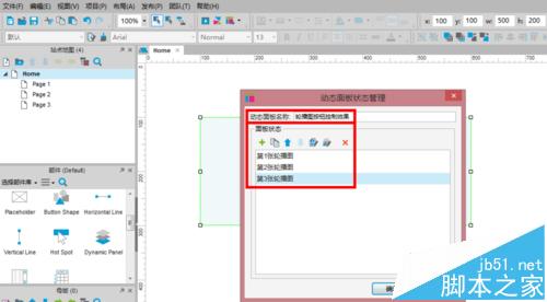 2、添加面板狀態:鼠標右鍵點擊“動態面板”,在彈出菜單中選擇“管理面板狀態”,給動態面板命名,并添加3個面板狀態,分別為“第1張輪播圖”、“第2張輪播圖”、“第3張輪播圖”,如下圖: