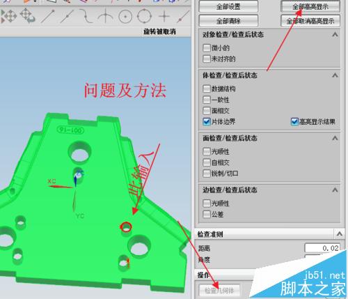3、我們點擊高亮顯示問題,找到問題點,還有部分沒有面的區域進行修補;