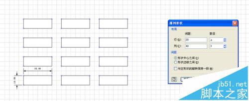 比如要陣列成為4*3,行中心距離為20,列中心距離為40的格式。