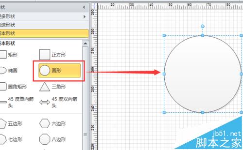2、然后將左側“基本形狀”中的圓形拖入到右側的編輯欄中進行編輯,如圖所示。