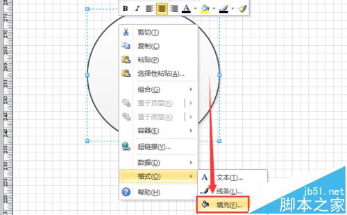 4、鼠標右鍵單擊圓形,選擇“格式”-“填充”選項,在彈出對話框中編輯圓形的填充屬性,如圖所示。
