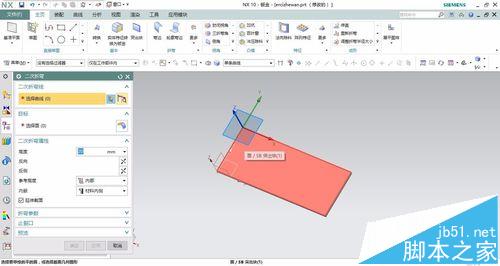 4、點擊二次折彎,接著進行草圖繪制,草圖平面選取突出塊的上表面,繪制一條直線,如下圖所示。