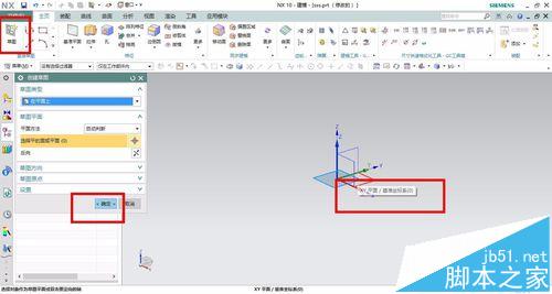 3、然后點擊草圖圖標,以xy平面為草圖平面繪制草圖。點擊確定進入草圖界面。(提示:確定按鈕可用鼠標中鍵)