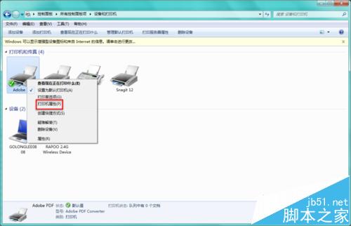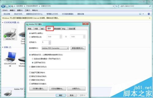 2、選擇這個(gè)虛擬打印機(jī),這是Adobe PDF虛擬打印機(jī),其他打印機(jī)可參考這個(gè)設(shè)置進(jìn)行配置
