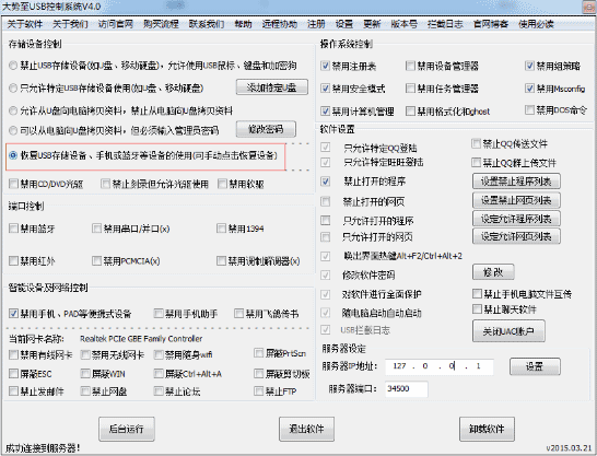 總之,大勢至電腦USB端口管理軟件是當前國內監控USB設備使用,尤其是禁用U盤、移動硬盤和手機等USB存儲設備使用最簡單、最有效和最嚴密的電腦U口監控軟件,可以真正做到在禁用USB設備,尤其是限制U盤使用、監控USB存儲設備的同時而不影響非USB存儲設備的使用,是當前國內控制USB接口使用、監控USB設備最精確、最嚴密的電腦USB端口監控軟件、電腦U口禁用軟件。