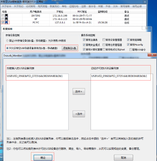 這樣,如果您有多個網銀U盾,則可以按照同樣的方法將其加入到許可的USB設備列表即可。網絡版則需要在管理端這里一一添加,然后分發到各個客戶端上面,如下圖所示: