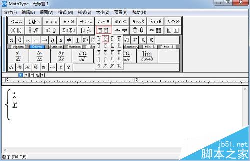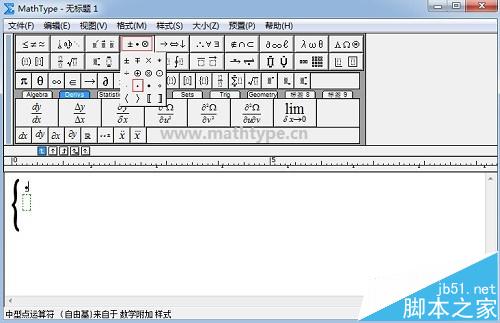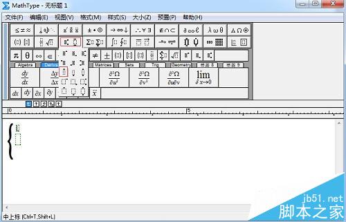 1、打開MathType軟件,在括號模板中選擇左邊大括號,在上標與下標模板中選擇中上標模板。