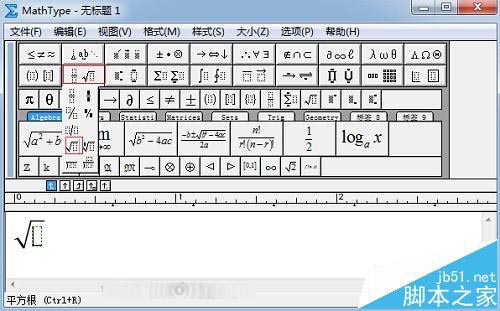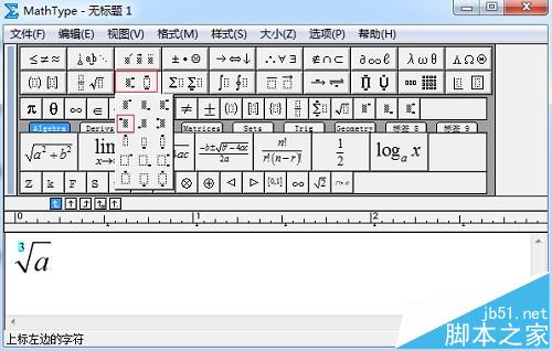 數學中的公式有很多,同一種數學符號在不同的數學定理或者在運用時符號樣式會有所不同,利用MathType編輯公式時,要根據不同的需要來對公式進行編輯,比如根式。在MathType中編輯根式時,尤其是n次根式,其默認樣式是開方次數在根號的中間,如圖所示:
