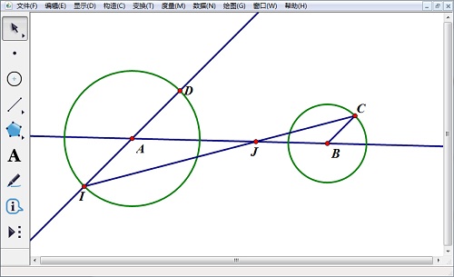 3、選中點C、I,選擇“構造”——“線段”,交直線AB于點J。