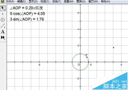 1、新建坐標系畫單位圓。單擊圖標---新建坐標系。然后標記原點為O,單位點為A,做線段OA,選中點O和線段OA,單擊構造,選擇以圓心和半徑畫圓,這樣單位圓就畫好了。