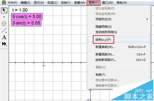 1、建立一個參數。單擊圖表---新建參數,新建一個參數,無單位,初始值為1。單擊確定。我們要畫出x=5cost,y=3sint的圖象。