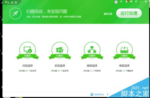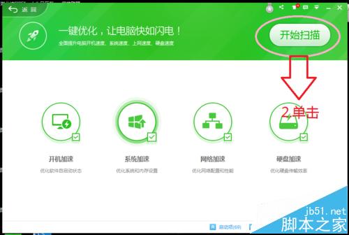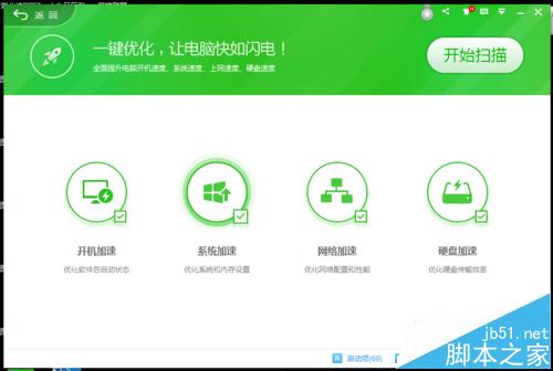 2、我們先要檢查一下是否被360安全衛(wèi)士禁止開機啟動了,打開360,點擊左下角的優(yōu)化加速(360版本不同這個功能可能不在這個地方),出現(xiàn)如下圖所示的界面