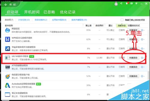 6、被其他的管理軟件禁止后,打不開ug,只需要設(shè)置成開機自啟動,并且重啟電腦即可