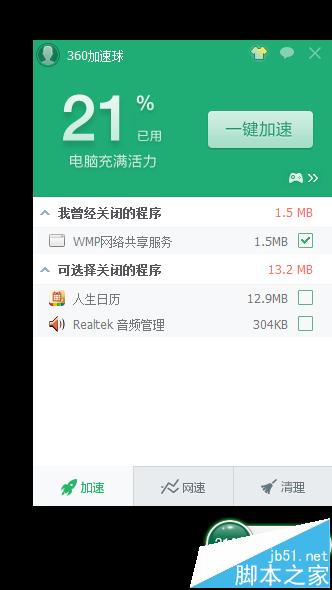 5、如果發(fā)現(xiàn)上面的界面中該啟動項本來就是開機自啟動,如下圖所示,則不是被禁止啟動項,則有可能是被360加速球或者軟件小助手一鍵清理工具給關(guān)閉了,如下所示的清理工具,這時重啟電腦即可,在使用軟件的時候不在清理即可