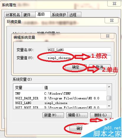 4、在彈出來(lái)的對(duì)話框中變量值simpl_chinese這一行中,把這幾個(gè)字母中隨便一個(gè)字母重新刪除在重寫一遍,單擊確定,確定即可。