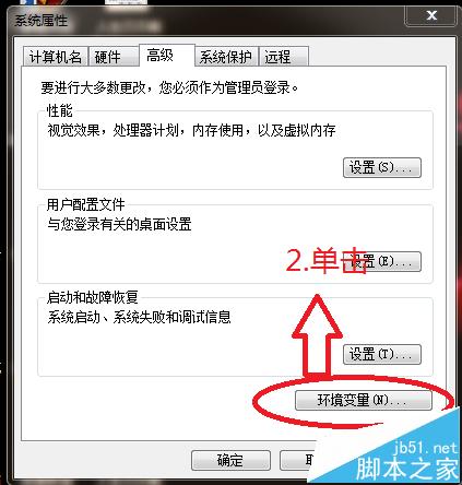2、在彈出來(lái)的界面中,單擊高級(jí)下面的環(huán)境變量