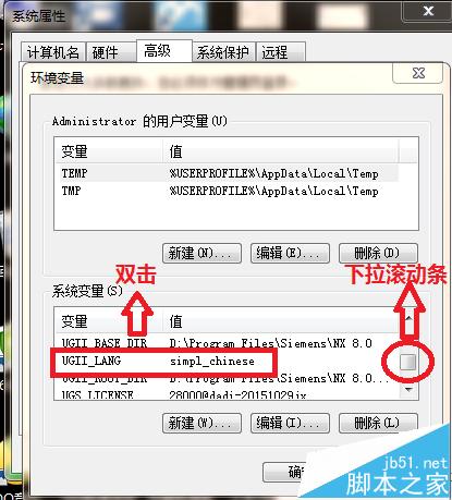 3、在彈出來(lái)的界面中,拖動(dòng)下拉滾動(dòng)條,找到UGII_LANG simpl_chinese這一項(xiàng),并雙擊