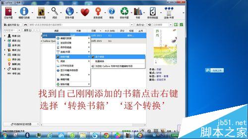 7、添加完成后,在列表中找到自己剛剛添加的圖書,點(diǎn)擊右鍵,選擇‘轉(zhuǎn)換書籍’‘逐個(gè)轉(zhuǎn)換'