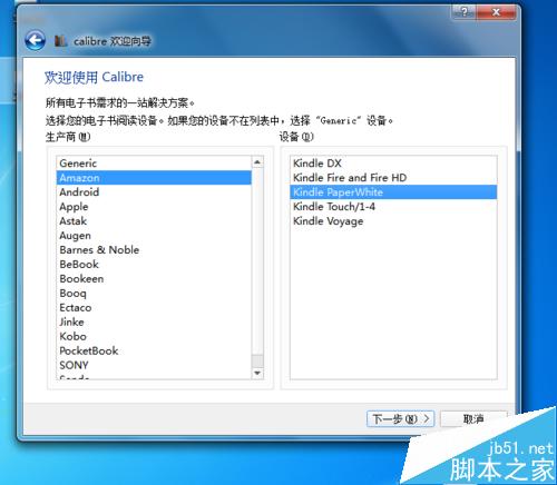 3、選擇你合適的設(shè)備,如果你是kindle的用戶那么,選擇Amazon---kindle,如果您買到的的是新款kindle也可以選擇kindle paperwhite。