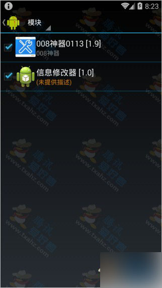 5、在模塊里面勾選信息修改器便可,然后打開信息修改器即可隨意修改手機信息了。【可修改 IMEI,手機型號,手機廠商,虛擬手機號,wifiSSID等等】