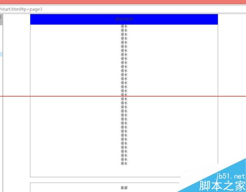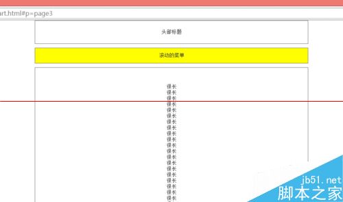 滾動中固定在頂部的標題并非頁面上的標題,是單獨制作的。復制“標題1”,將復制的標題命名為“標題2”,設置“標題2”x坐標等于“標題1”的x坐標,y坐標等于0。修改“標題2”背景色為藍色。