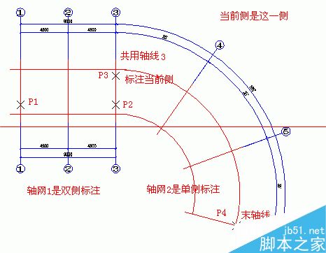標注完成的組合圓弧軸網如下圖所示: