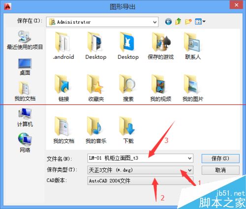5、可以在保存類型中選擇天正3-9的文件,一般說的導T3格式,就是天正3的格式,用Autocad軟件可以直接打開并識別圖紙中所有內容。天正8文件為天正8.5編輯的文件,也是天正格式,CAD不能直接識別,但是天正8.5的軟件可以直接識別,默認T20的格式,8.5版本的天正軟件不能識別,天正9為天正2014軟件,其它版本的不常用就不再介紹了。