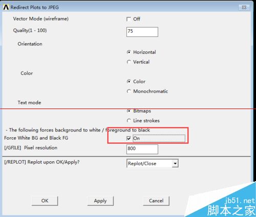 3、打開redirect plots to jpeg files窗口,設(shè)置如圖所示,即可拷貝出清洗的白色背景圖片。