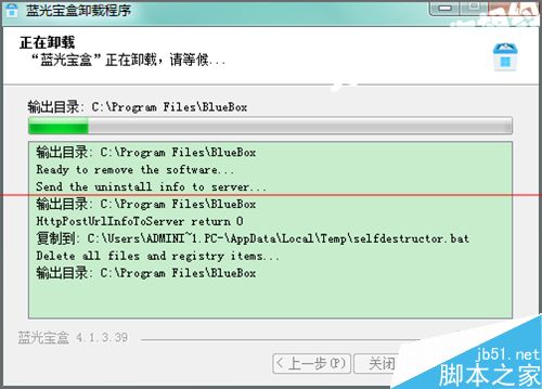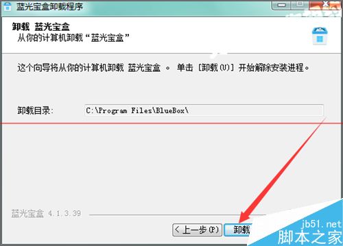 6、接著它會彈出一個界面,在這個界面中可以看到這個向導將從你的計箕機卸載藍光寶盒,單擊卸載開始解除安裝進程。我們點擊卸載。