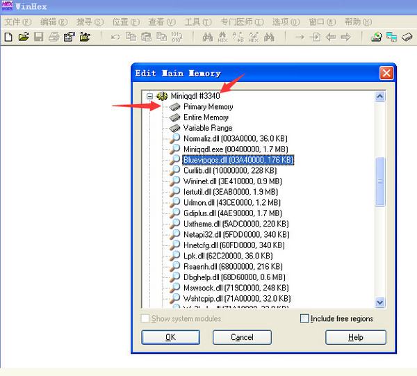 找到進程名稱和 PID,點擊+號展開,選擇第一個 Primary Memory ,點擊 OK