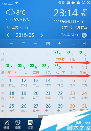 什么時候放假清清楚楚一目了然,安排起來也得心應手不犯迷糊。當過了五一小長假,下一個假期的到來就有些長了。今年的端午節(jié)是6月20日,端午小長假是6月20日到22日,距離勞動節(jié)約50來天。像小編這種五天年假已經請了四天的人來說就只能看著小伙伴們按照小編的拼假方法任性請假了。小編希望小伙伴們多利用人生日歷上面的拼假編輯合理掌握、安排假期,平衡好工作與休閑的時間。