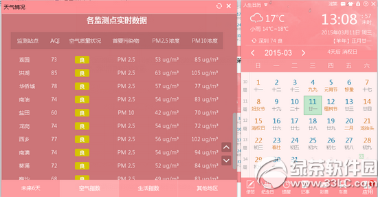 值得一提的是往下看還會發現人生日歷直接注明了,各個監測點的PM2.5數據。通過下圖我們可以直接看到各監測區域的空氣質量狀況、PM2.5濃度。這樣您就可以根據這些數據來有選擇的出行。