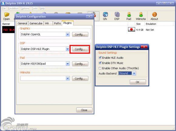 DSP插件分為HLE、LLE(缺陷較多)和NULL(無聲音)三種,一般只選擇HLE并采用默認設置即可