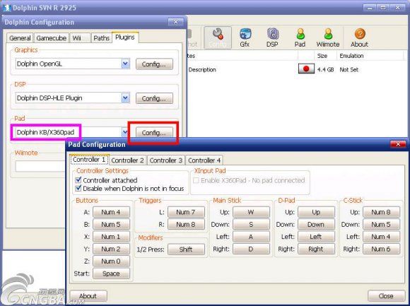 KB/X360pad插件的設置項,跟nJoy的基本一致,選用X360手柄也是會自動匹配手柄按鍵,如果是用鍵盤就要再設定了。
