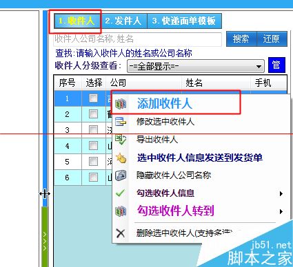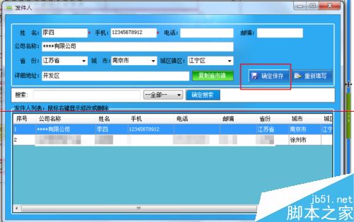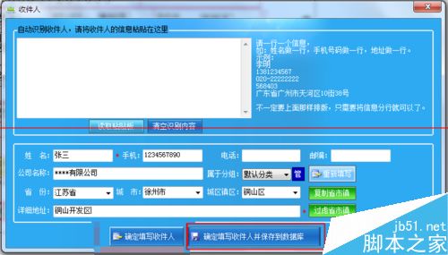 4、添加收件人信息,點擊“確認填寫收件人并保存到數據庫”。