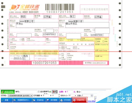 10、以上輸入完成后,點擊“開始打印“,完成你的快遞單打印。