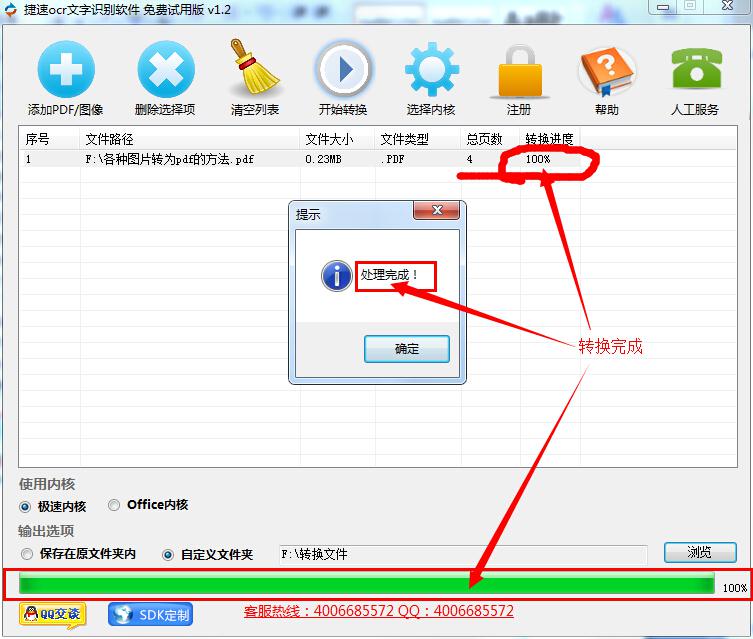 第三步:軟件正中上方有個“開始轉換”按鈕,單擊此按鈕轉換工作就開始了,用戶等待片刻文檔即可轉換成功。(點擊“開始轉換”按鈕時,會出現提示注冊的窗口,用戶可以根據自己需求選擇是否注冊)