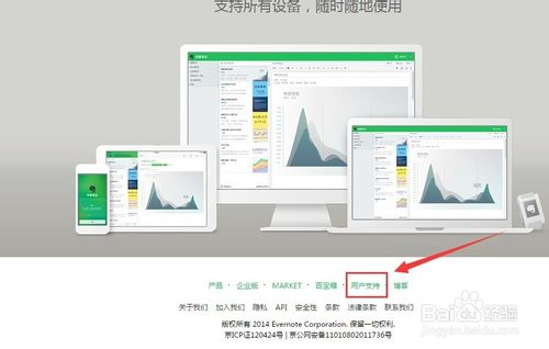 2、滑到官網(wǎng)的底部,找到“用戶支持”并點擊進去
