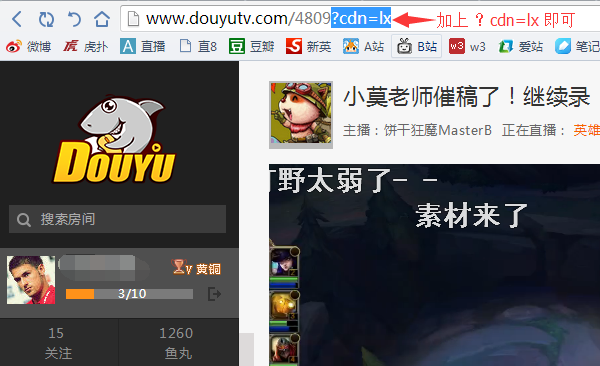 大家可以試試在地址的最后面,也就是主播房間名字的后面加?cdn=lx,就不會那么卡了,效果拔群!