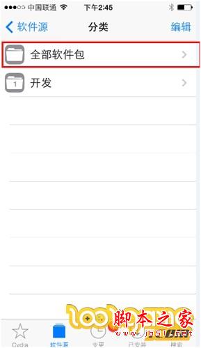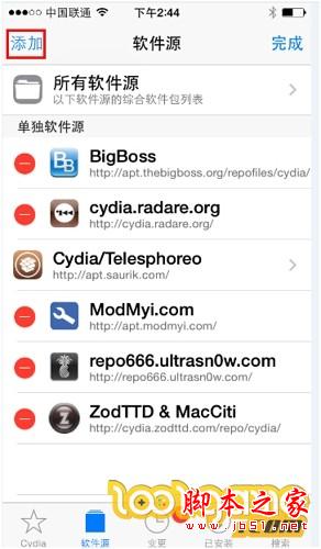 1、首先點擊已經越獄的IOS設備上的cydia圖標,進入管理界面后,選擇軟件源(下圖紅框所示位置);