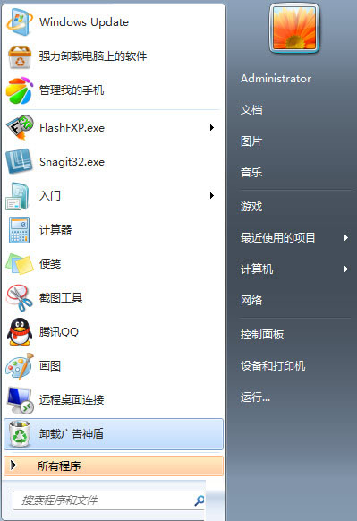 3.從開始菜單中選擇卸載廣告神盾也可以完成卸載哦