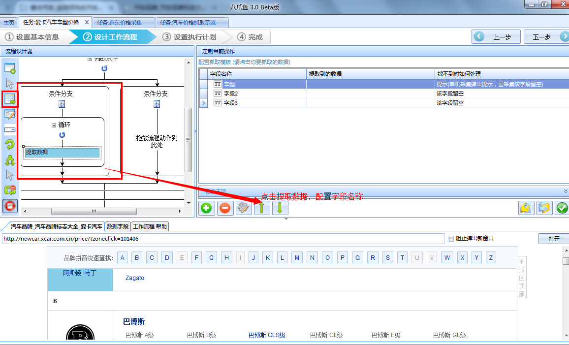 第七步,設(shè)置好條件判斷后,對(duì)該頁面配置所需要的提取數(shù)據(jù)