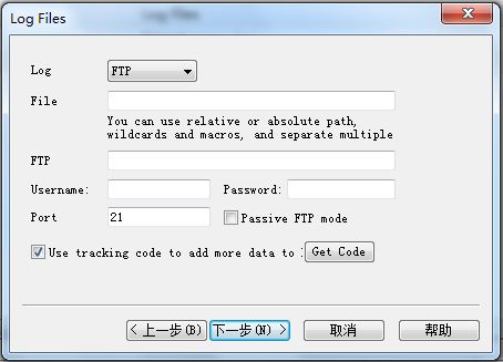 當(dāng)然,加入你的日志在服務(wù)器上,你又不想把日志下載到本地,在的你log 選擇的為FTP類型,將會(huì)打開(kāi)FTP界面。