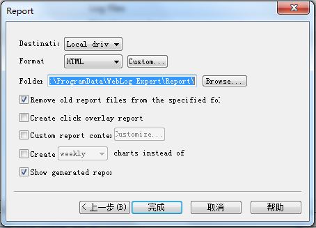 點(diǎn)擊完成,報(bào)告就會(huì)生成。如果你不是太理解的話,選擇要分析日志文件,后面都可以默認(rèn),即可完成整個(gè)創(chuàng)建過(guò)程。