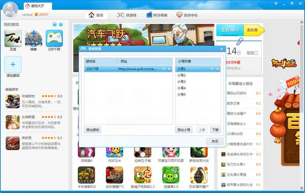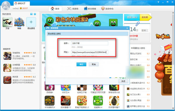 在游戲管理界面點(diǎn)擊《添加游戲》然后再輸入游戲名稱和網(wǎng)址最后點(diǎn)擊《確定》。
