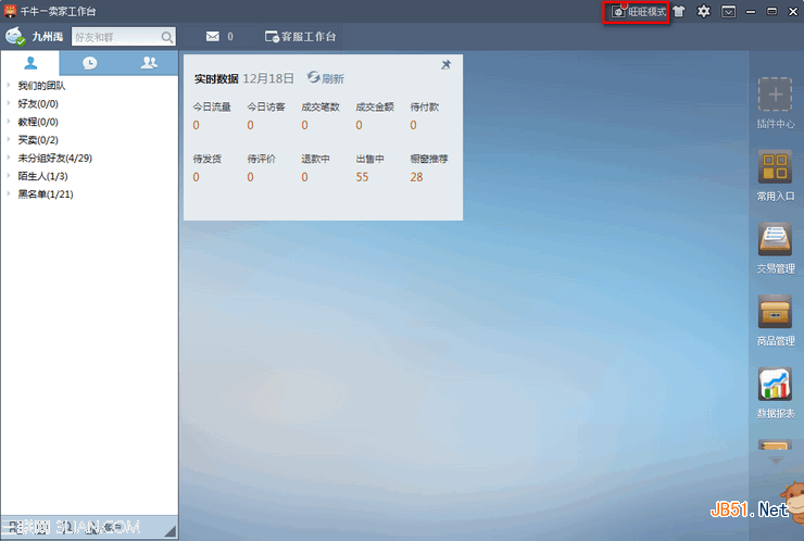 千牛有2種模式,旺旺模式和工作臺模式,旺旺模式就是界面和旺旺一樣的樣子,工作臺模式就是類似將所有的功能都集成到一個桌面上。