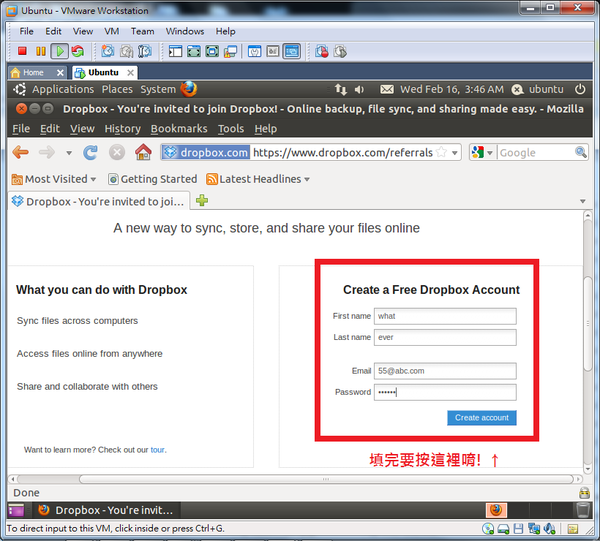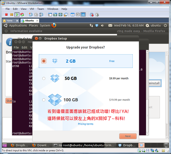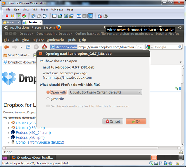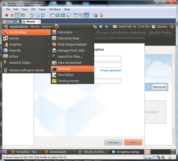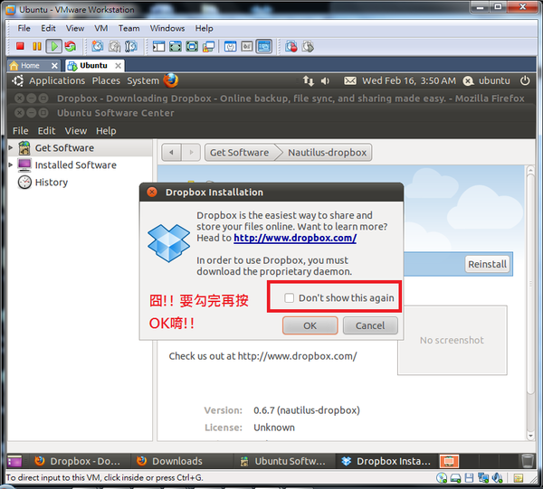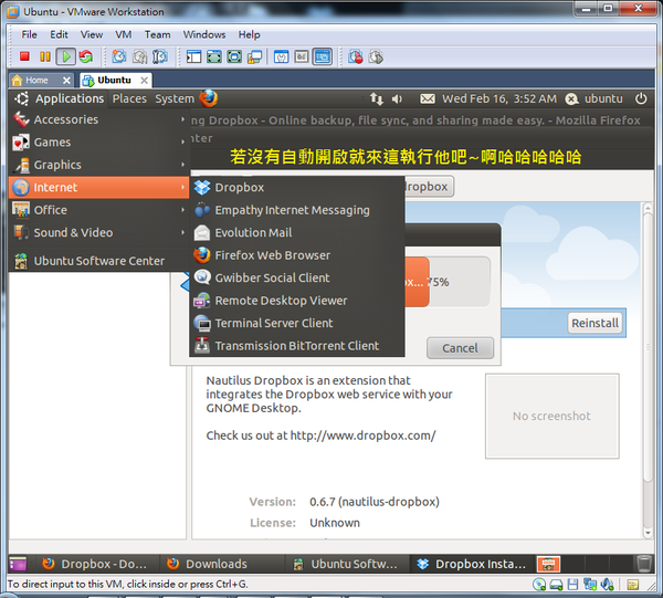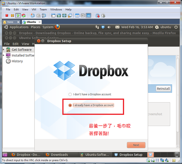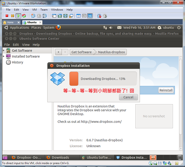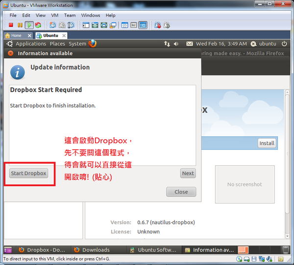4. 在VMware完成第一次下載Dropbox及安裝程序。