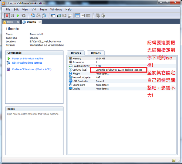 5. 建立虛擬機的畫面,先下載Ubuntu iso檔,然后建立虛擬機的時候,記得把iso文件掛進光驅并設定Connected power on。